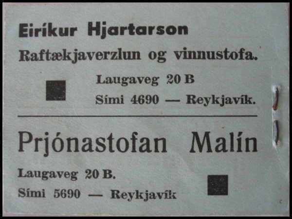 - "Laugaveg 20 B" bzw. "Laugaveg 20 B." (mit Punkt) bzw. "Laugaveg 20 B. Reykjavík."