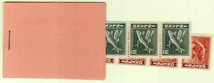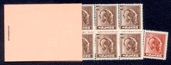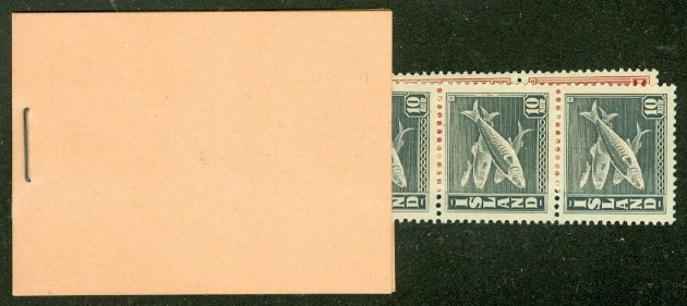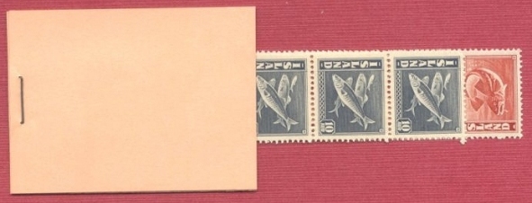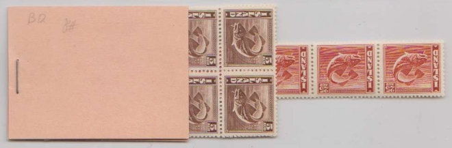Einige Beispiele von Heftchen 8I (nach Facit): sie können sich in der Anordnung der Briefmarken (Streifen, Viererblock, etc.), der Reihenfolge der Befestigung und der Orientierung, mit der sie eingeheftet sind, unterscheiden.