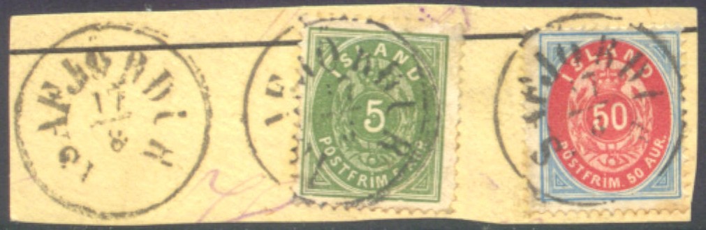 Vorbemerkungen und Besonderheiten dänische Nummernstempel: "236" | "237" dänische Ortsstempel: BERUFJORD | REYKJAVÍK | SEYÐISFJÖRÐUR Antiqua-Ortsstempel: AKUREYRI | BJARNARNES | BÆR | ÐALASYSLA | DJÚPIVOGUR | EGILSTAÐIR | ESKIFJÓRÐUR | GRENJAÐARSTAÐUR | HJARÐARHOLT HRAUNGERÐI | ÍSAFJÖRÐUR | KIRJUBÆJARKLAUST: | MIKLAHOLT | MIKLIBÆR | REYKJAVÍK | SEYÐISFJÖRÐUR | STRANDASÝSLA STYKKISHÓLMUR | SVEINSTAÐIR | VESTMANNAEYJAR | VÖLLUR Grotesk-Ortsstempel: DYRAFJÖRÐUR | REYKJAVÍK | SAUÐÁRKRÓKUR | SKAGAFJAÐARSÝSLA | VOPNAFJÖRÐUR | ÞINGEYJARSÝSLA |