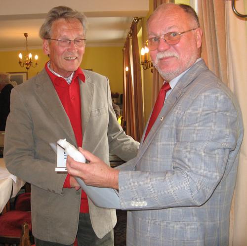 Herr Wahl erhält von Herrn Fullrich den Ehrenpreis und die Urkunde