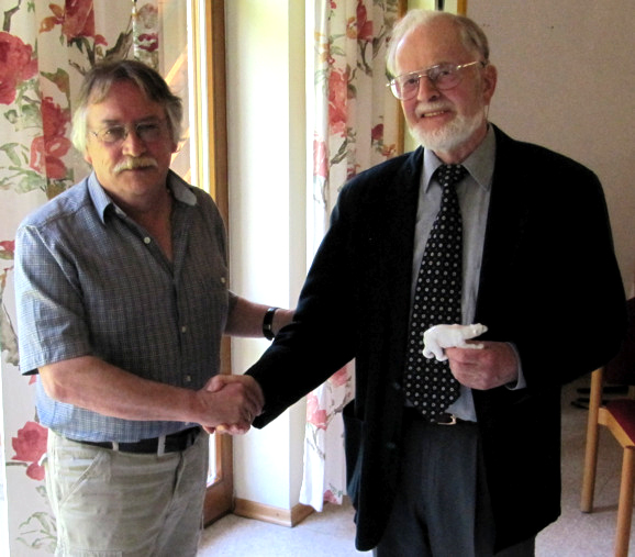 Herr Dörnbach (rechts) erhält von Herrn Fiedler den Ehrenpreis