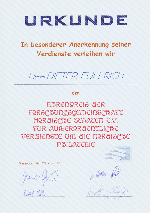 Urkunde zum Ehrenpreis 2016
