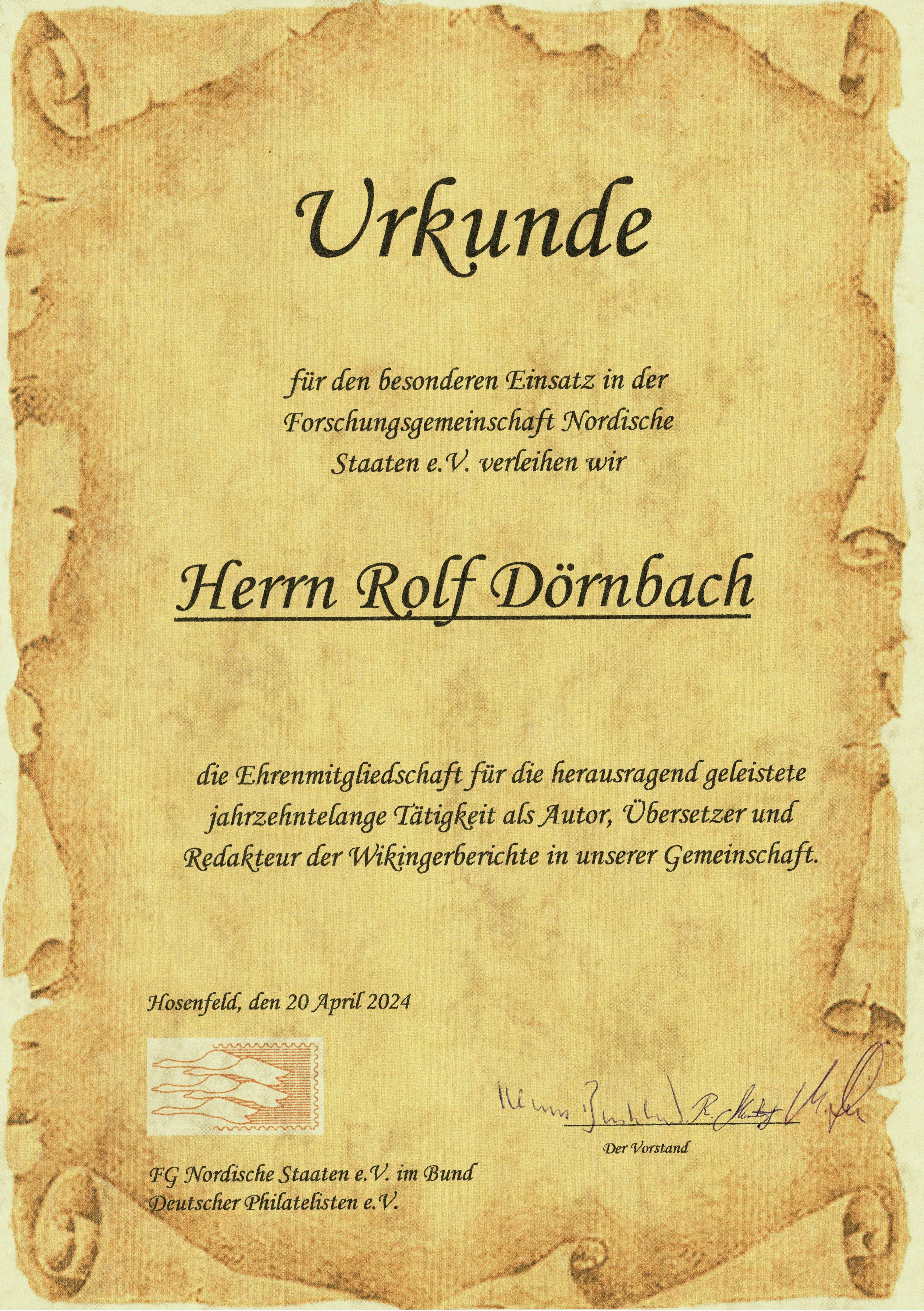 Urkunde zum Ehrenpreis 2024