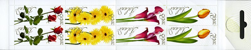 - Both stamps from the booklet with the same flower have the same line structure