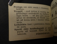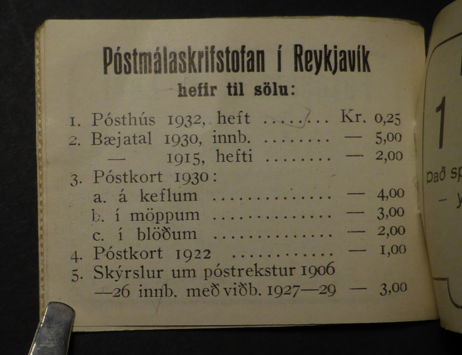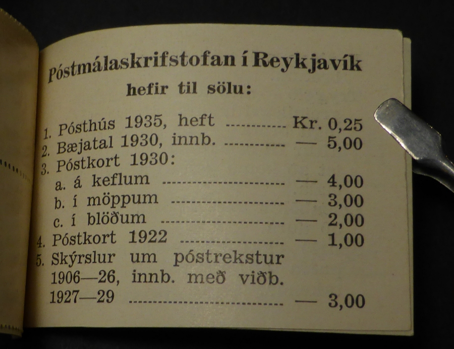Zur schnellen Orientierung sind hier die Umschläge der Heftchen H1 bis H7 (nach Facit) dargestellt und die wichtigsten Unterschiede markiert. Die Systematik des Facit-Katalogs ist folgende: Die Kennzeichnung eines Heftchens besteht aus einer Ziffer (für die enthaltenen Briefmarken) und einem Buchstaben (für das Deckblatt und ggf. die Rückseite). Ferner sind die Katalog-Nummern nach Facit, DAKA und Þór Þorsteins miteinander verglichen und die im Heftchen enthaltenen Briefmarken abgebildet. Abschließend noch einige der Werbeblätter, soweit Abbildungen davon vorliegen.